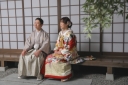 茅葺き屋根の庵を背景に。腕組み姿がとてもお似合いでした・・!
