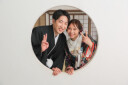 メリーゴーランドの階段に座るお二人。迫力のある写真ですね!