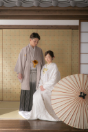 和装と和傘がベストマッチしてますね。和装が似合うお二人だからこそのお写真です。