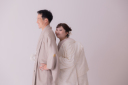 撮影のラストは、おふたりでお花を手に持ったカットを。やさしく微笑むおふたりの表情が印象的で、あたたかな一枚になりました。
