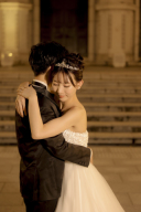 東千田公園でメインの建物の前で立ち姿を撮りました。色味もコンクリート素材が大人っぽい、落ち着いた2人の雰囲気にとてもマッチングしていました!