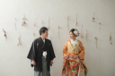 白をバックに見つめ合いショット♪お二人の表情や、衣装が引き立ちます♡