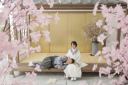 この池にはコイがたくさん泳いでいてそれを眺めながら撮影。だいぶ緊張もほぐれて穏やかな表情ですね。