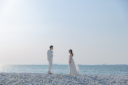 ボードに乗った新婦様がcute✨新郎様も落ちないように手を繋いでいてとても素敵です!