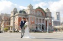 和傘を持つ新婦様が素敵です!そしてキリッとした表情の新郎様もCOOL!