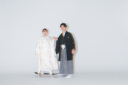 一面の大理石が、ドレスとタキシードの白を一層引き立てます。