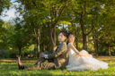 寄り添いショット!!!おふたりの淡い色味のコーディネートが映えてかわいいです ♡