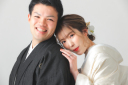 ピントが合っていて後ろで和傘を持った新婦様も素敵です。