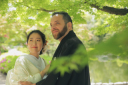 新郎様が後ろからハグ。少し照れくさいかもしれませんが、いろいろなポーズもご提案します!