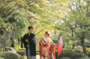 真っ白な白無垢に黒ラメの紋服がロケーションにぴったりですね!