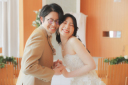 新郎様がかがまないといけなくて新婦様はそのまま立てる、身長差が可愛い写真になりました。