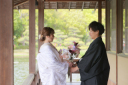 手を繋いで新郎様がエスコート。勝尾寺は広いので雰囲気の違う写真も撮れますよ!