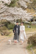 カラフルな背景の庚申堂とちいかわで、かわいくお二人らしさも溢れるお写真になりました♪