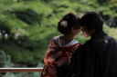 水墨画の背景に凛と佇みかっこよさを醸しだします。普段することがあまりないかっちりさも写真ならでは!