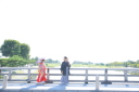 こちらは一本橋での一枚になります。新郎さんが新婦さんの手を引いて、お二人でバランスを取りながら橋の真ん中まで歩かれました(^^)