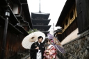 京都の緑ロケーションも映えます!お二人に見つめあっていただきました。