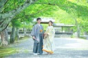 【屋内庭園】には四季折々を表現できるセットがありますが、この竹林風セットも人気です。少し夕焼けをイメージしながら、お二人の寄り添う感じがとっても素敵でした♪