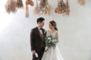 フォトウェディングならではのお顔を寄せ合ったカットです♪カラフルな背景とお二人の笑顔がとてもマッチしています^^