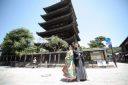 チャペルの背景を使って撮影していきます!全身を写したフォーマルな写真もしっかり撮影いたします♪