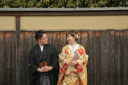 艶やかなお二人の衣装に藤色が重なり、上品な雰囲気が生まれます