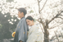 黄色の色打ち掛けがとってもお似合いですね♪前方には桜、後方にもハートの猪目窓から覗く桜のピンク色が春らしい雰囲気を演出してくれています!