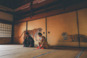 縁側に座ってほっこりお話をしているような優しい雰囲気のお写真。静かで心地よい時間が流れているようですね♪