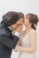 全体が入ることで映えるドレスがとってもお似合いの新婦様♡白の背景でも、ドレスとブーケ、それから新婦様の肌の艶やかさが際立っていますね^^