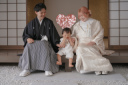 シンプルな壁なので新婦様の色打ち掛けと新郎様の茶色の紋付袴がとても映えますね。