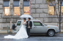 数カット撮影でハーバーを和装で行ってきました。水たまりにお二人が映り込んでのリフレクション撮影