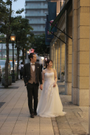 広いスタジオだからこそ、後ろ姿もしっかり残させていただきます!特別な日のお二人が迷って選んだドレス・タキシードです!