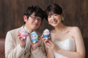 お二人がサングラスを持参されていたので、自動販売機を背景に遊び心を加えた写真を撮りました!お二人の個性が出ているとてもユニークな写真になっています!