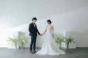 和装に身を包んだ新郎新婦様が、和傘の下で向かい合う幻想的な一枚!静かな光に包まれ、ふたりの誓いの瞬間を切り取っています。