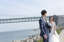 あえて銭湯でかっこよく撮影しました。違和感を楽しむ遊び心のあるお二人の提案。