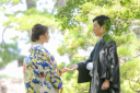 爽やかな緑に映える美しい白無垢