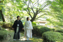 雨上がりで緑がより深みを増していました。おふたりの笑顔も晴れやか。