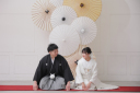 和室を背景に全身のお姿。おふたりとも和装がよくお似合いです☆