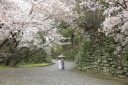 桜と後ろ姿が美しく調和してます。着物や髪型もしっかり残します。