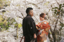 桜の季節におふたりの横顔ショット。雰囲気のある一枚。