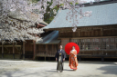和傘といっしょに和装撮影。「和」感が増してステキですね。