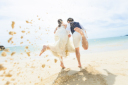 せーので振り返って思いっきり笑顔!!!素敵です♡ビーチで爽やかな印象◎
