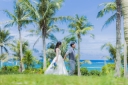 綺麗な海と空をバックに指輪交換のシーン♪素敵ですね!