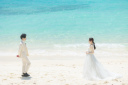 空と海の青にお二人の白が映えますね。指輪もチラッと見えるのがポイントです。