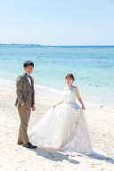 グラデーションのように砂浜の白からどんどん深くなるエメラルドグリーン。きらきら水面に反射する光と海の透明感。指輪を渡すにはこれ以上ないシチュエーション。