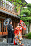 自然に囲まれたお庭での撮影は本当に素敵です!新婦様のご衣装がとても映えてますね!
