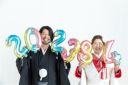 お持込いただいた記念日バルーンでのご撮影!番傘×バルーンでの彩豊かな1枚!優しい笑顔が素敵なお写真になりました◎
