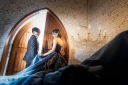 落ち着いた雰囲気の中 クラシカルな背景でのご撮影◎見つめ合い微笑む二人がなんとも可愛らしいです♪