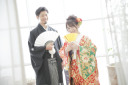 華やかな色打掛に真っ白ブーケのコーディネイト♪爽やかな笑顔が素敵です!