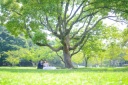 新緑が綺麗な庭園での撮影。赤い色打掛がより一層映えます♪