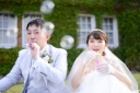 トレーンが長い豪華なドレスにラフなハーフパンツのタキシードを選ばれました!