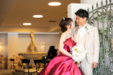 ご新婦様はグリーンのカラードレス、ご新郎様はネイビーのタキシードにお色直し。ご新婦様のドレスに合わせてタキシードも選びたい!と仰っていたオシャレなおふたりです。